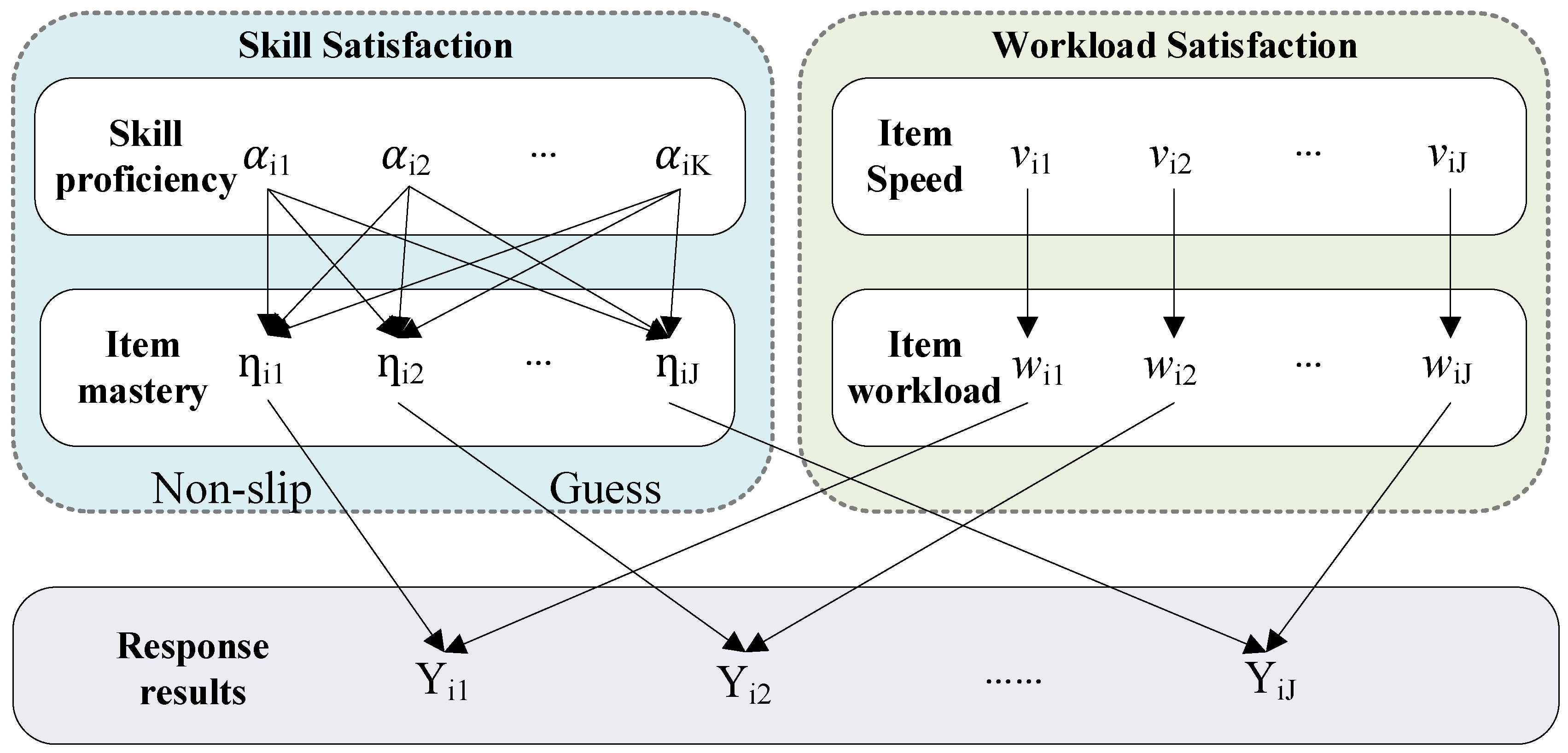 Q-matrix. Second, analyse the factors that affect the examinee’s cognitive process, including response speed, mistakes, guessing and other factors, and model these factors. Finally, obtain the examinee’s skill mastery according to the model.