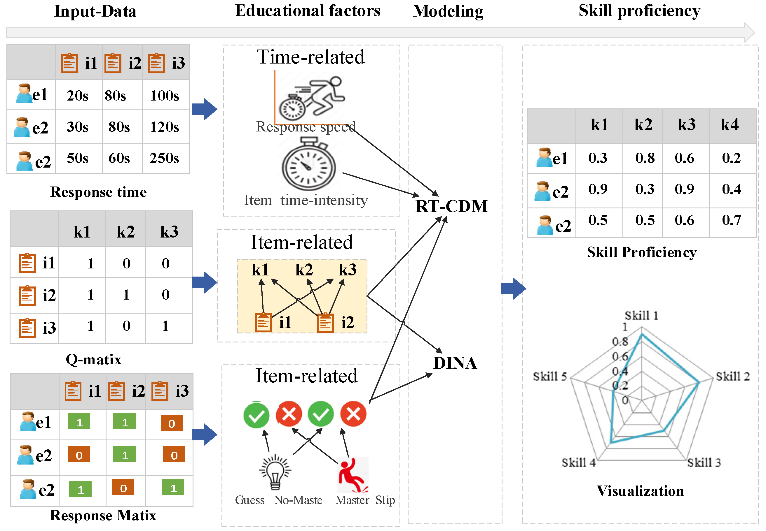 RT-CDM introduces a continuous item mastery function and a RT function to achieve a more precise cognitive analysis. The framework of RT-CDM is as shown in