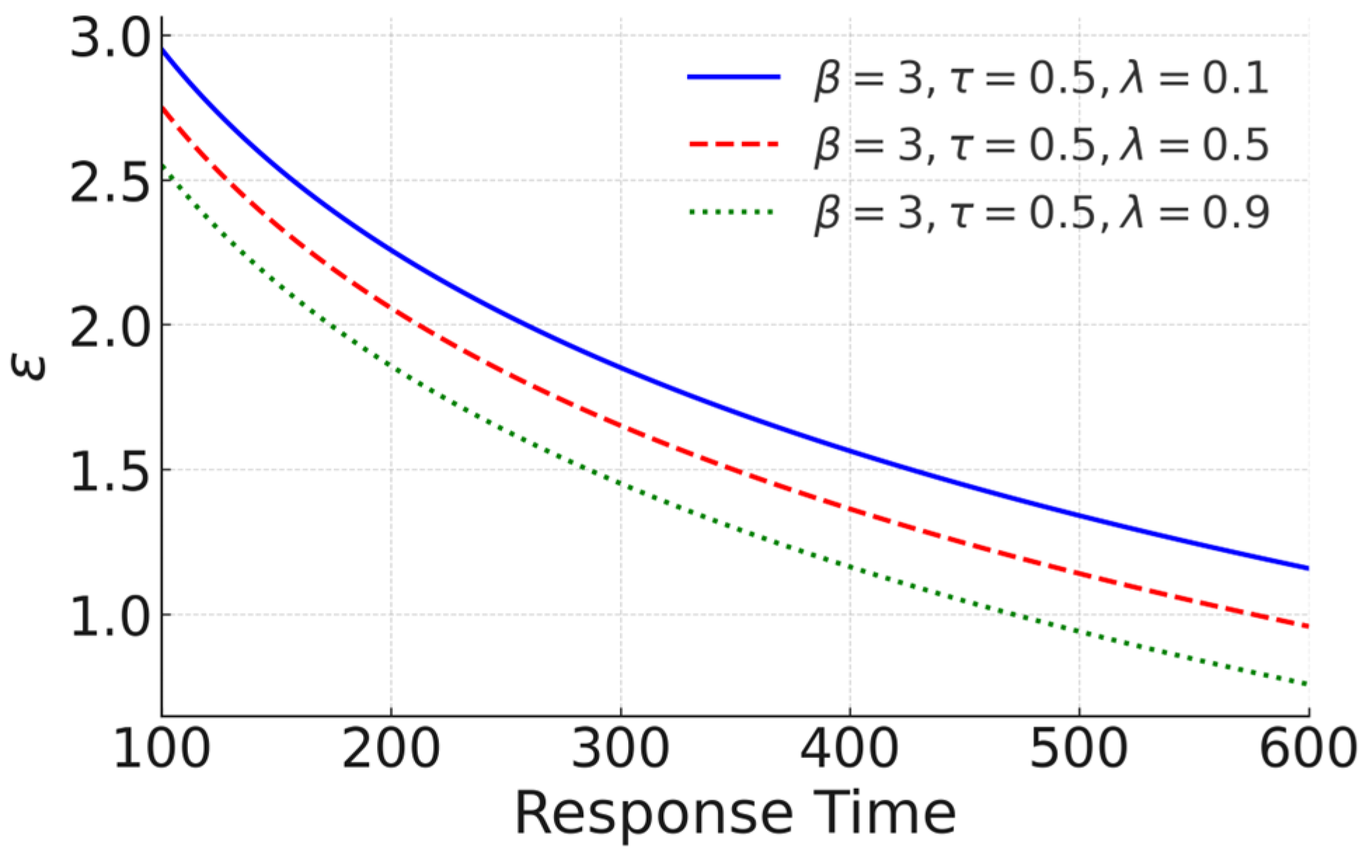 The matching degree between the examinee’s RT and the standard RT of item, denoted by , is determined by the time intensity of item , the examinee’s speed , and the examinee’s RT .