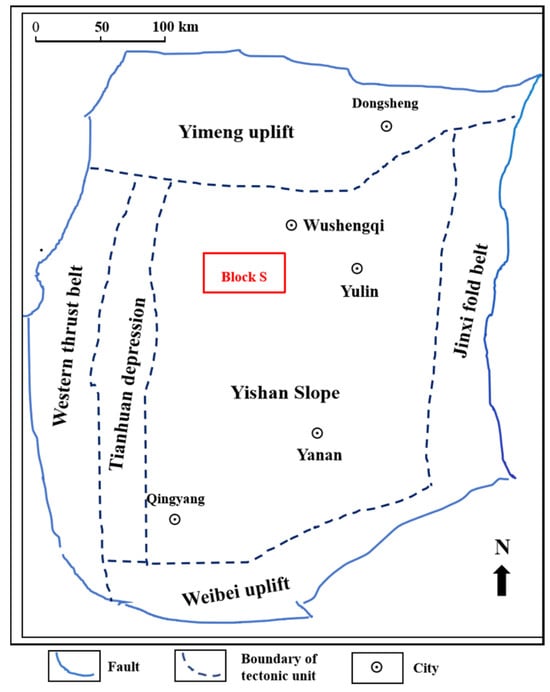 The study area, known as S block, located in the central region of the Sulige Gas Field and adjacent to Wushenqi on the east, lies structurally within the Yishan Slope in the northwestern Ordos Basin, as shown in Figure 1.