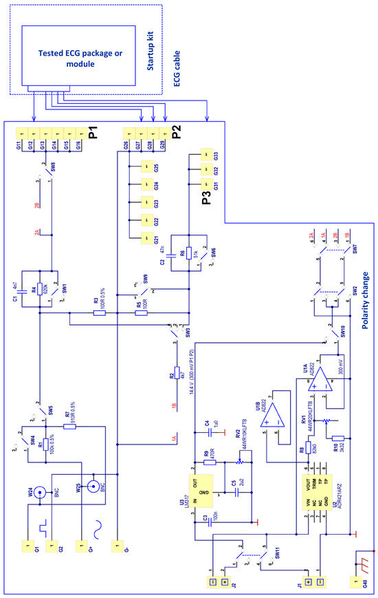 - SW1 RC two-terminal bypass switch for measuring the input impedance of the ECG input;