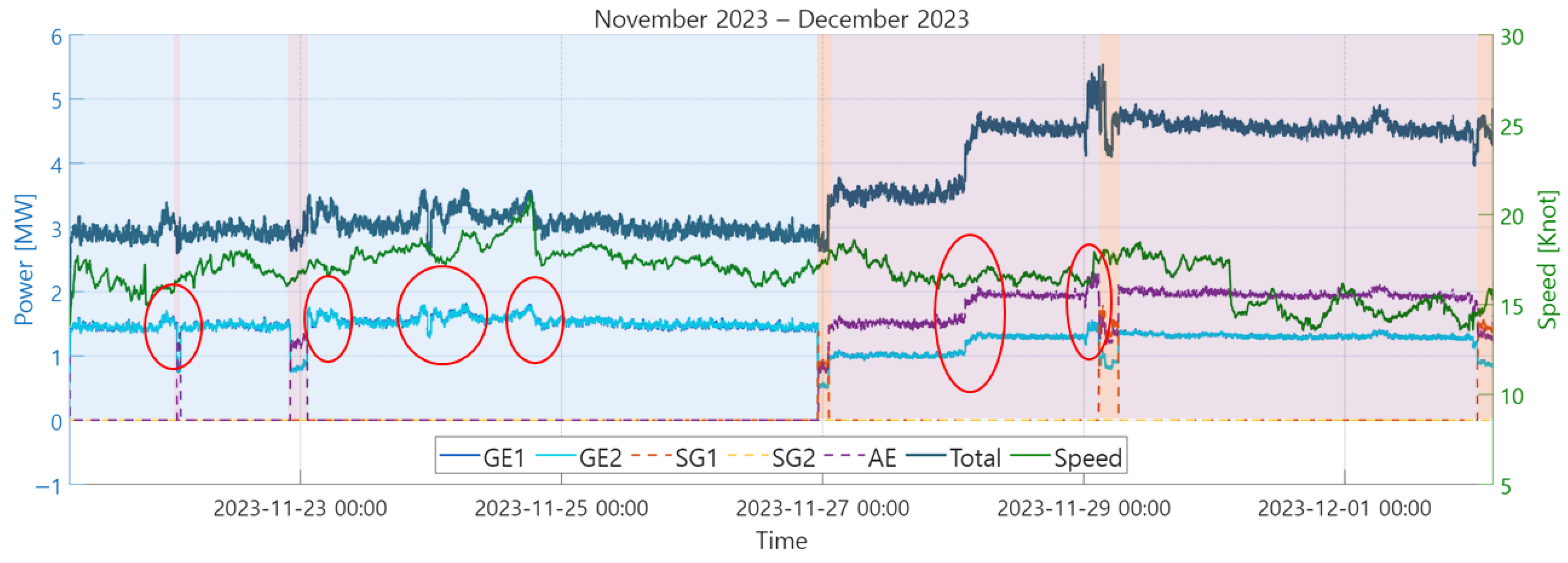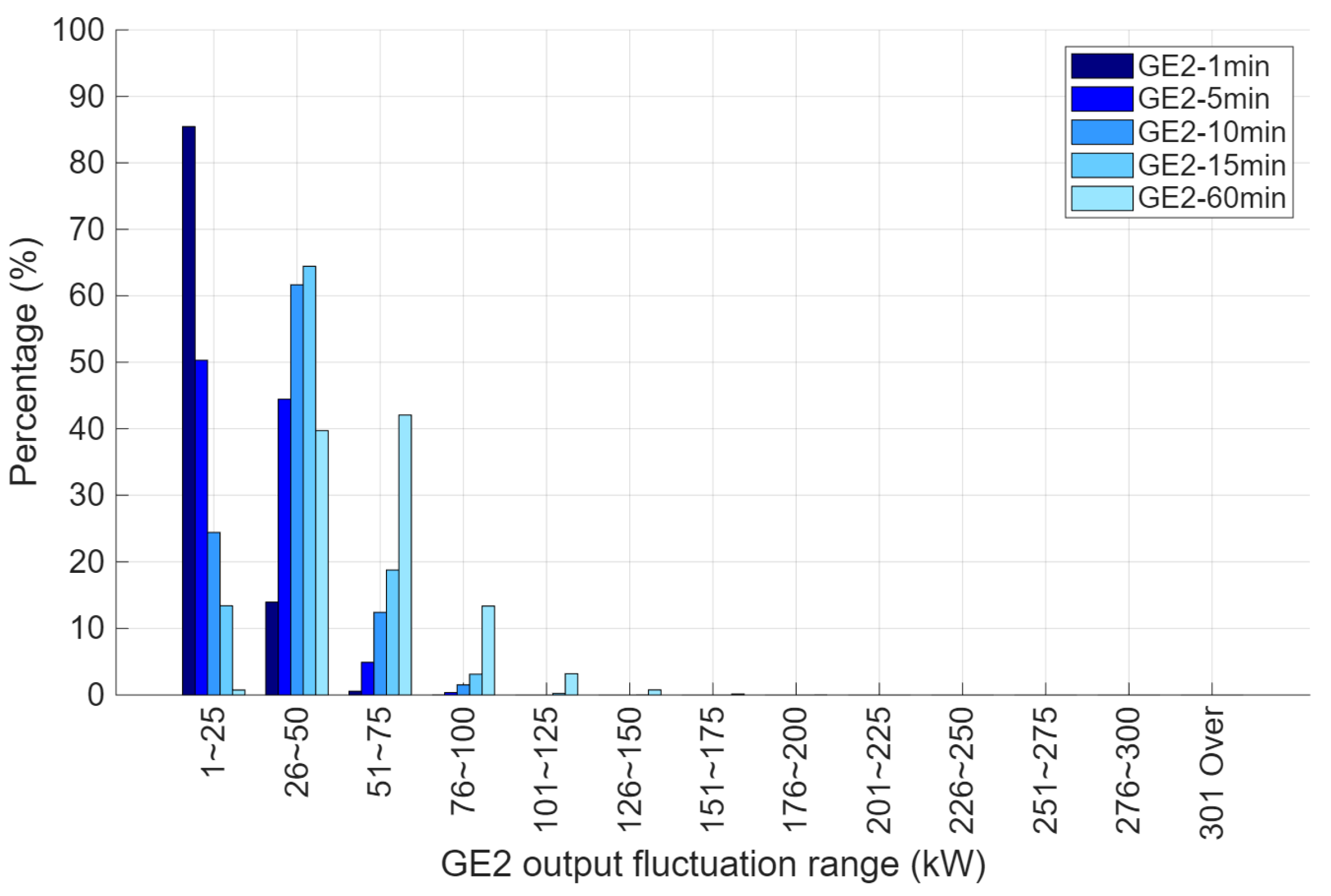 - Output power from GE with low variation regions was excluded when the 5-min slope of the GE1 or GE2 output was less than or equal to 50% of the respective rated output.