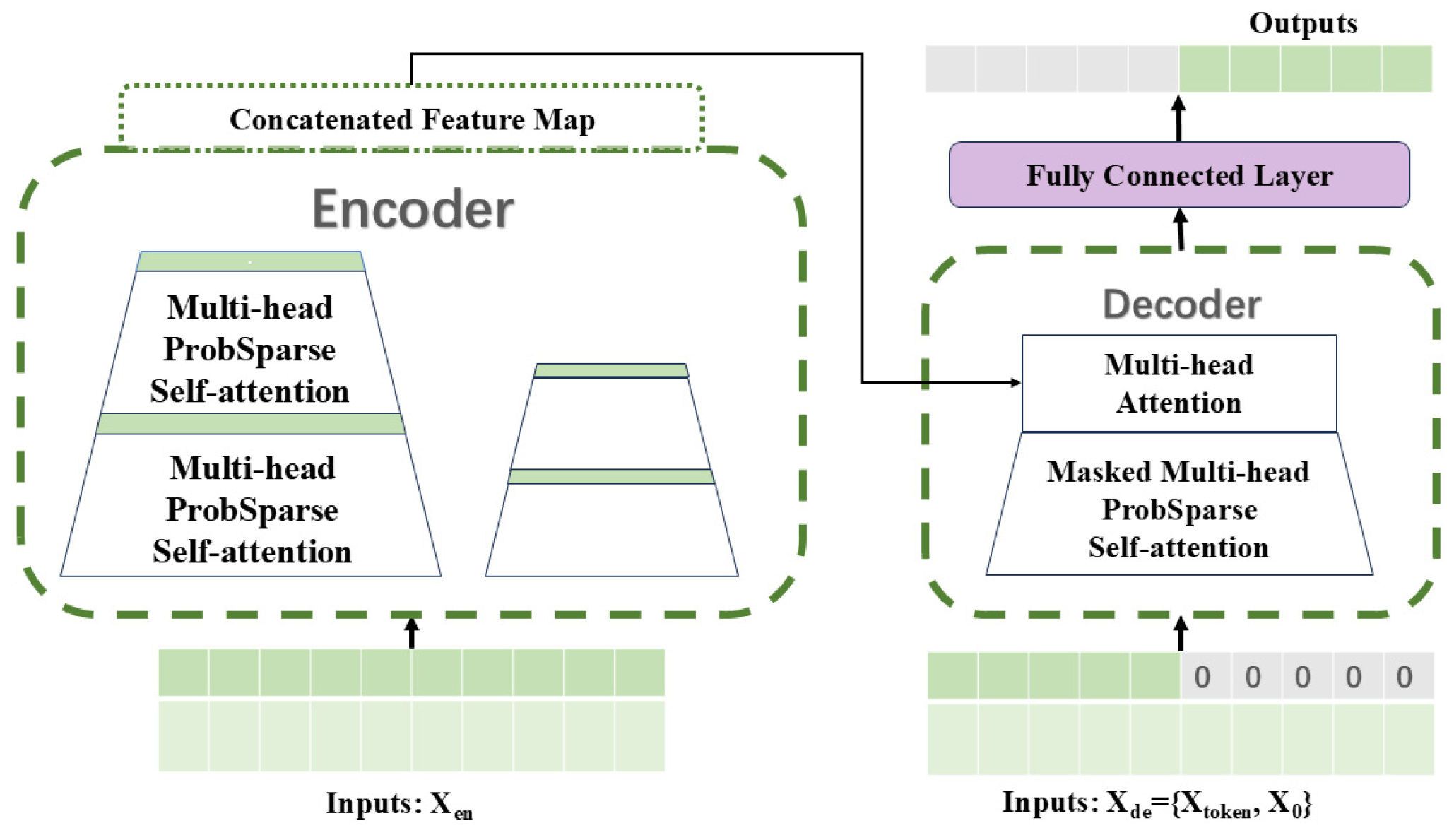 - Zhou, H.; Zhang, S.; Peng, J.; Zhang, S.; Li, J.; Xiong, H.; Zhang, W. Informer: Beyond efficient transformer for long sequence time-series forecasting. In Proceedings of the AAAI Conference on Artificial Intelligence, Virtual, 2–9 February 2021; pp. 11106–11115. [Google Scholar]