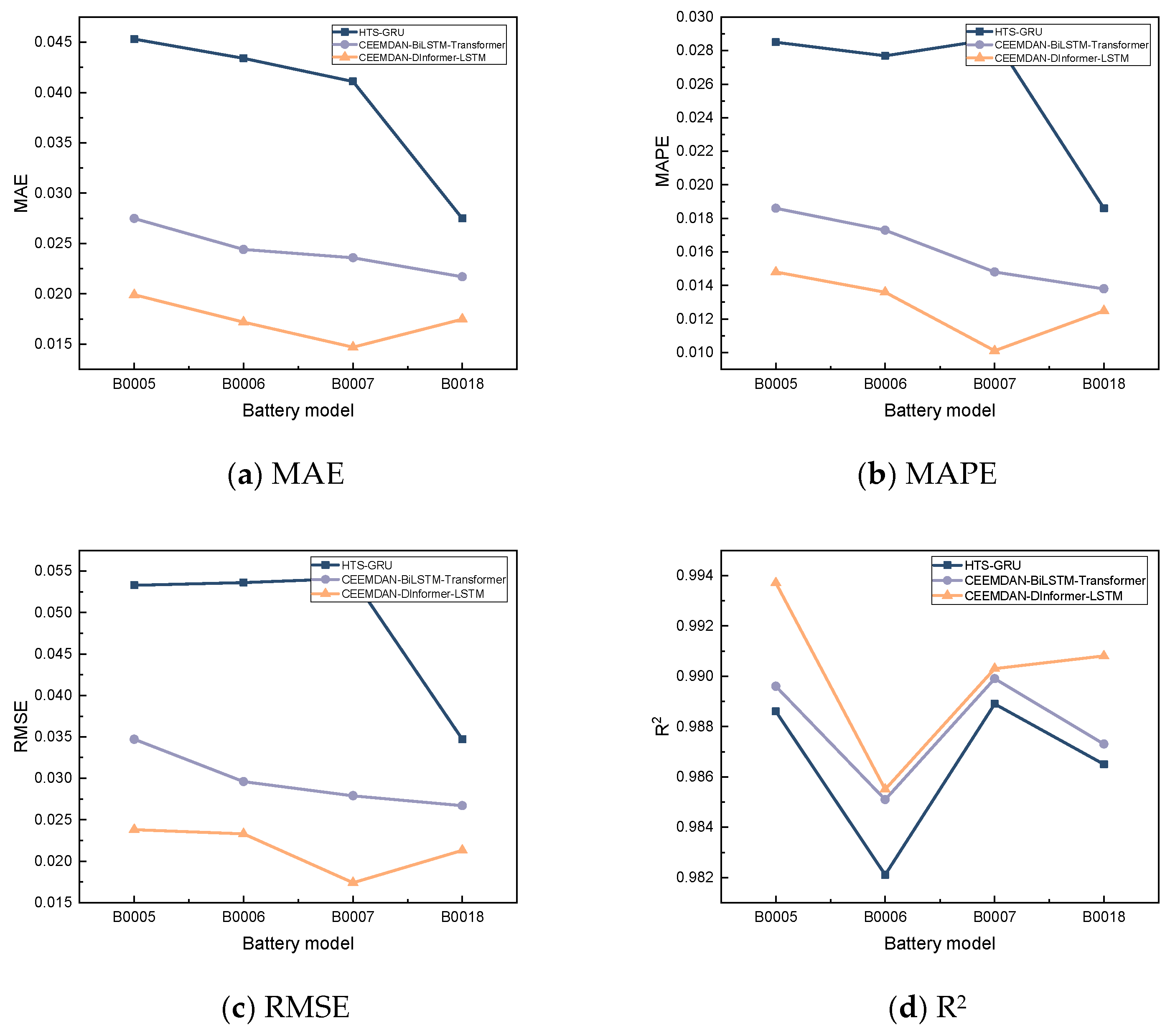 - Chen, D.; Hong, W.; Zhou, X. Transformer network for remaining useful life prediction of lithium-ion batteries. IEEE Access 2022, 10, 19621–19628. [Google Scholar] [CrossRef]