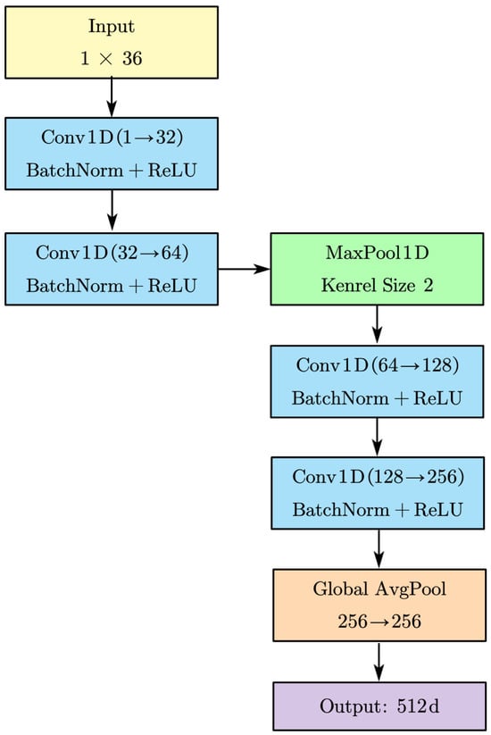- Conv1D (, 384, kernel_size = 3) → BatchNorm → ReLU;