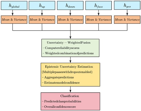 Classical Bayesian Neural Networks (BNNs) utilize techniques such as Variational Inference (VI) [] or Monte Carlo (MC) Dropout [] to approximate posterior distributions of weights. These approaches have been effectively applied to domains such as medical imaging [] and autonomous driving []. More recent studies also investigate Bayesian modeling in human behavior recognition. For instance, Wang et al. [] proposed a Bayesian LSTM-based classifier for action recognition under limited data settings, and Chen et al. [] introduced Bayesian fully connected layers in gait classification to reduce the impact of imbalanced datasets. However, these approaches predominantly focus on end-to-end deep neural models, where uncertainty is estimated at a global or sequence level, often lacking the ability to model uncertainty in a structured, fine-grained manner across different body regions.