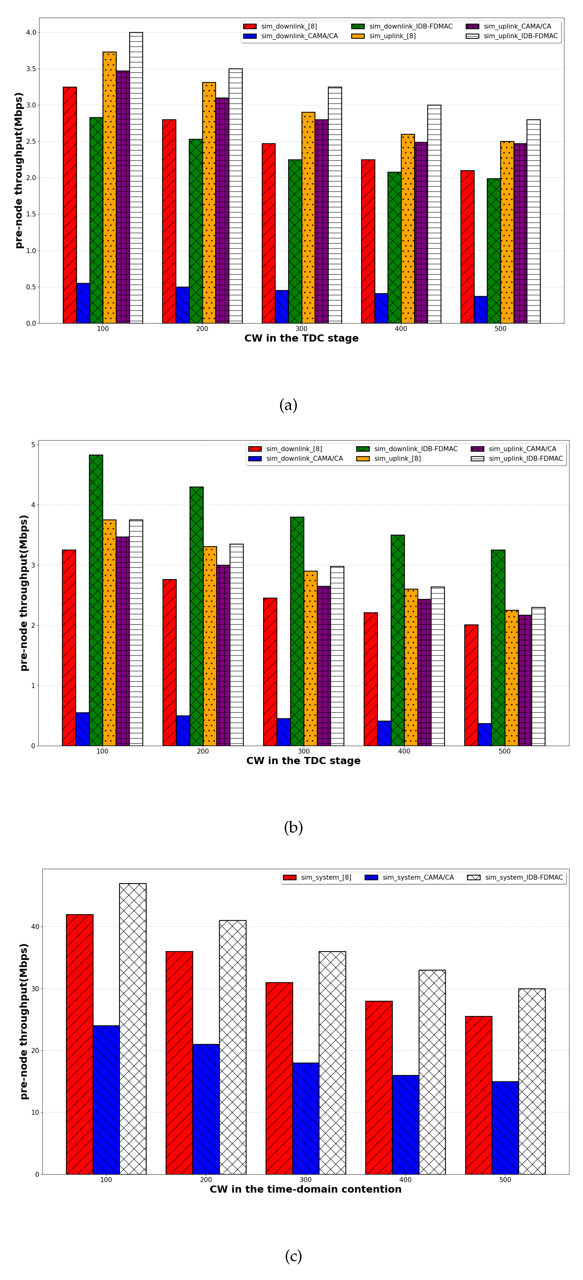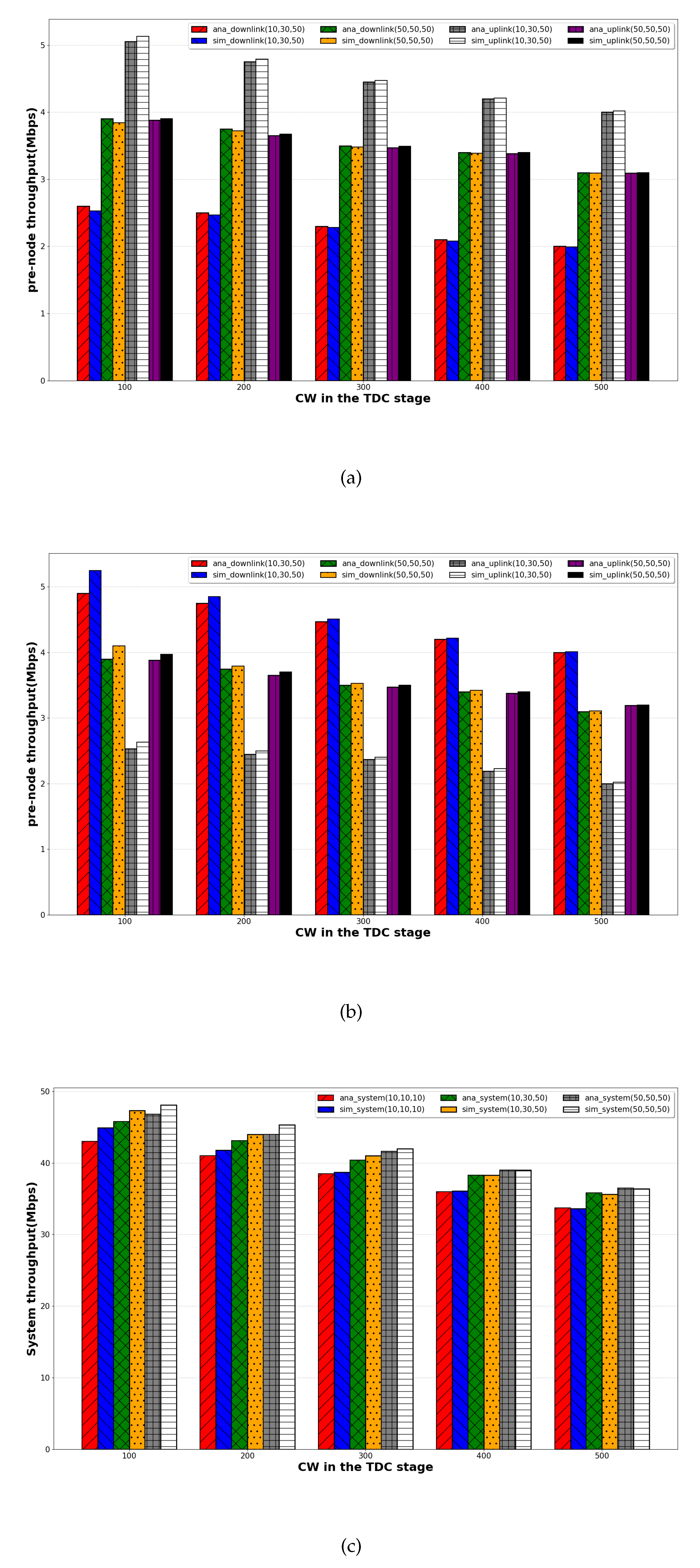 - Contention Impact in Dense Networks: As the number of nodes continues to increase beyond an optimal point (around 44 Mbps with 25 nodes in this configuration), the system throughput begins to saturate. This behavior is expected and is attributable to the rising probability of collisions in the time-domain contention (TDC) stage. Increased contention leads to longer backoff periods and more time spent on collision resolution, which slightly diminishes the gains from having more transmission opportunities.