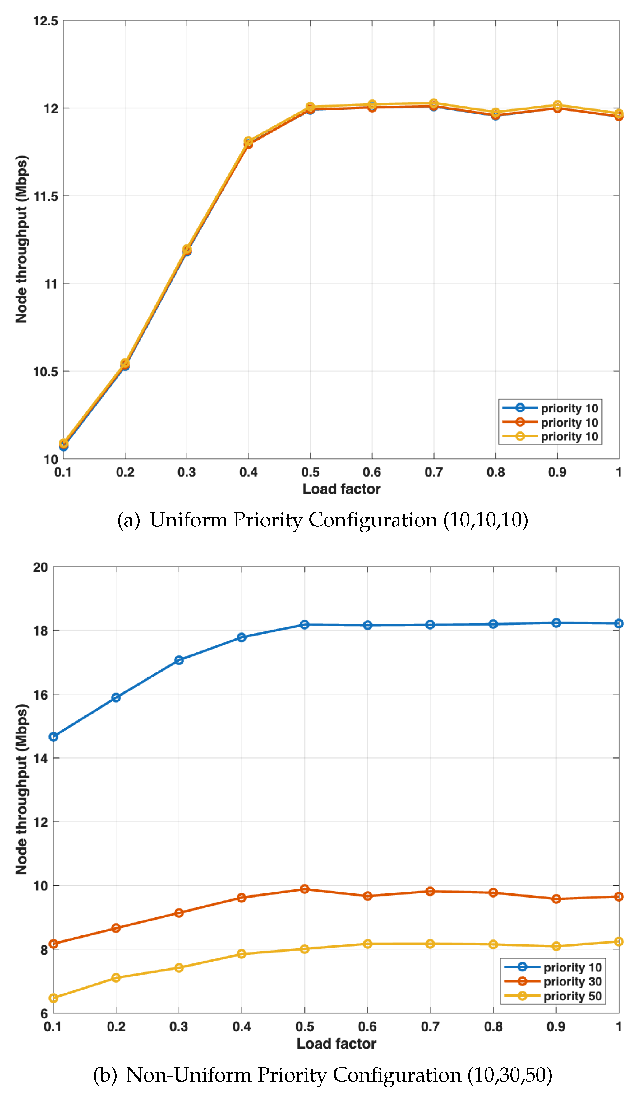 - Nassiri, M.; Heusse, M.; Duda, A. A novel access method for supporting absolute and proportional priorities in 802.11 WLANs. In Proceedings of the IEEE INFOCOM 2008-The 27th Conference on Computer Communications, Phoenix, AZ, USA, 13–18 April 2008; pp. 709–717. [Google Scholar]