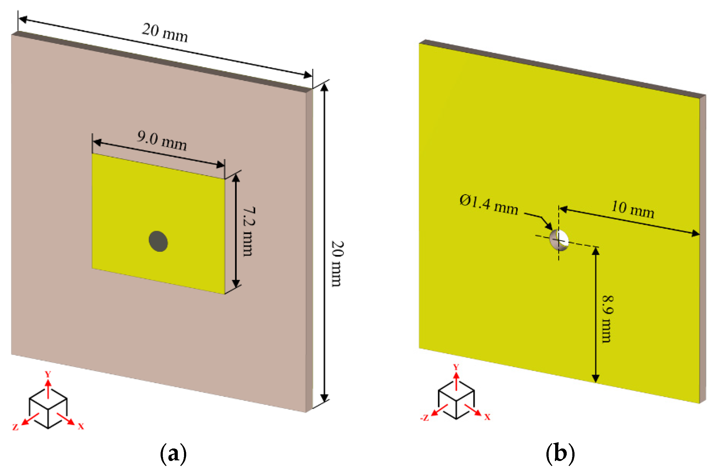 To efficiently excite the patch and facilitate integration into the mechanical rotation system, a coaxial pin feed was employed. This approach minimizes the influence of surface microstrip lines while providing robust mechanical and electrical contact. A 1.4-mm diameter hole was drilled through the substrate to mount an SMA connector [