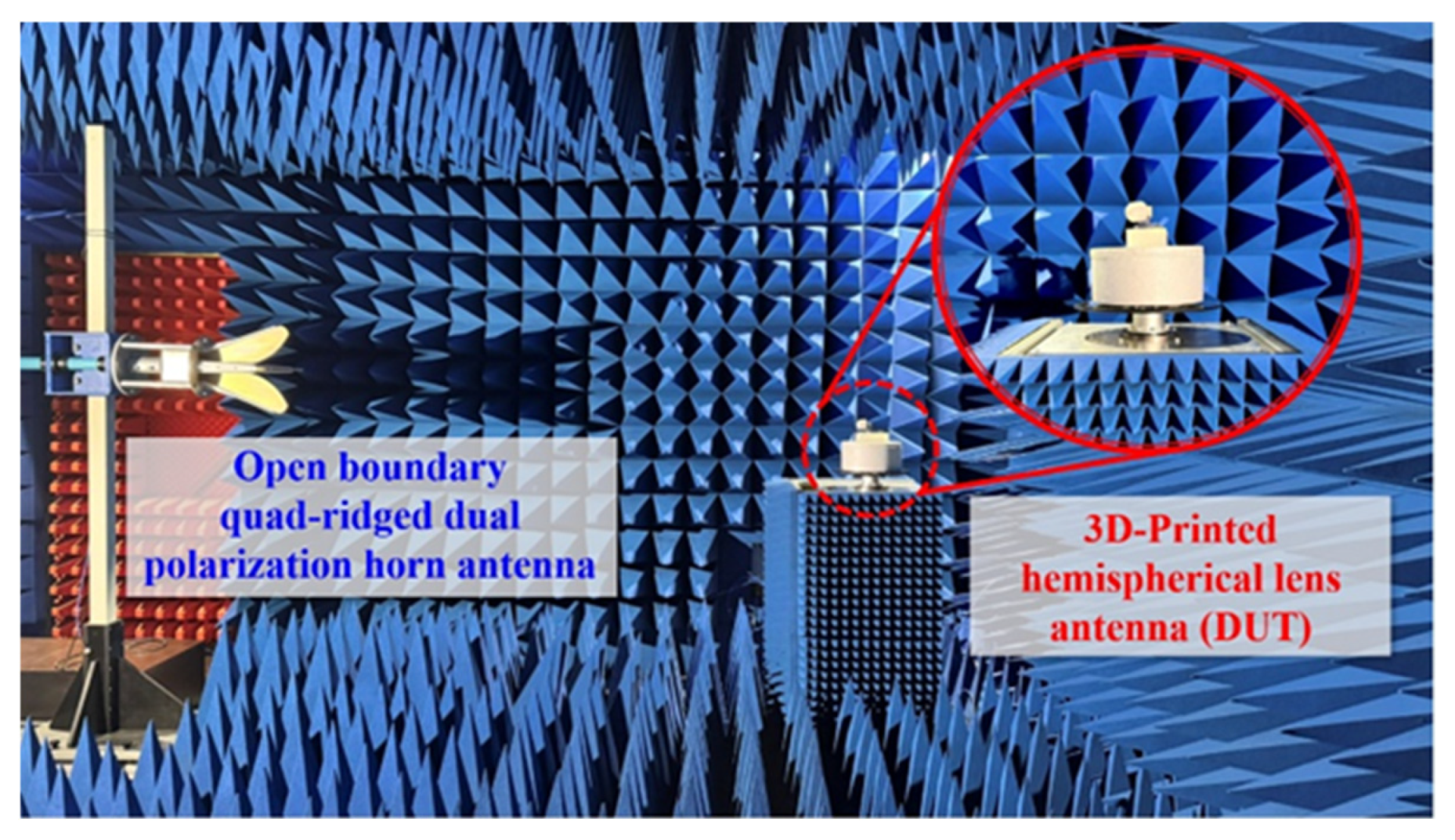 To enhance the radiation performance of the antenna system, a 3D-printed hemispherical lens was employed, following the methodologies presented in [