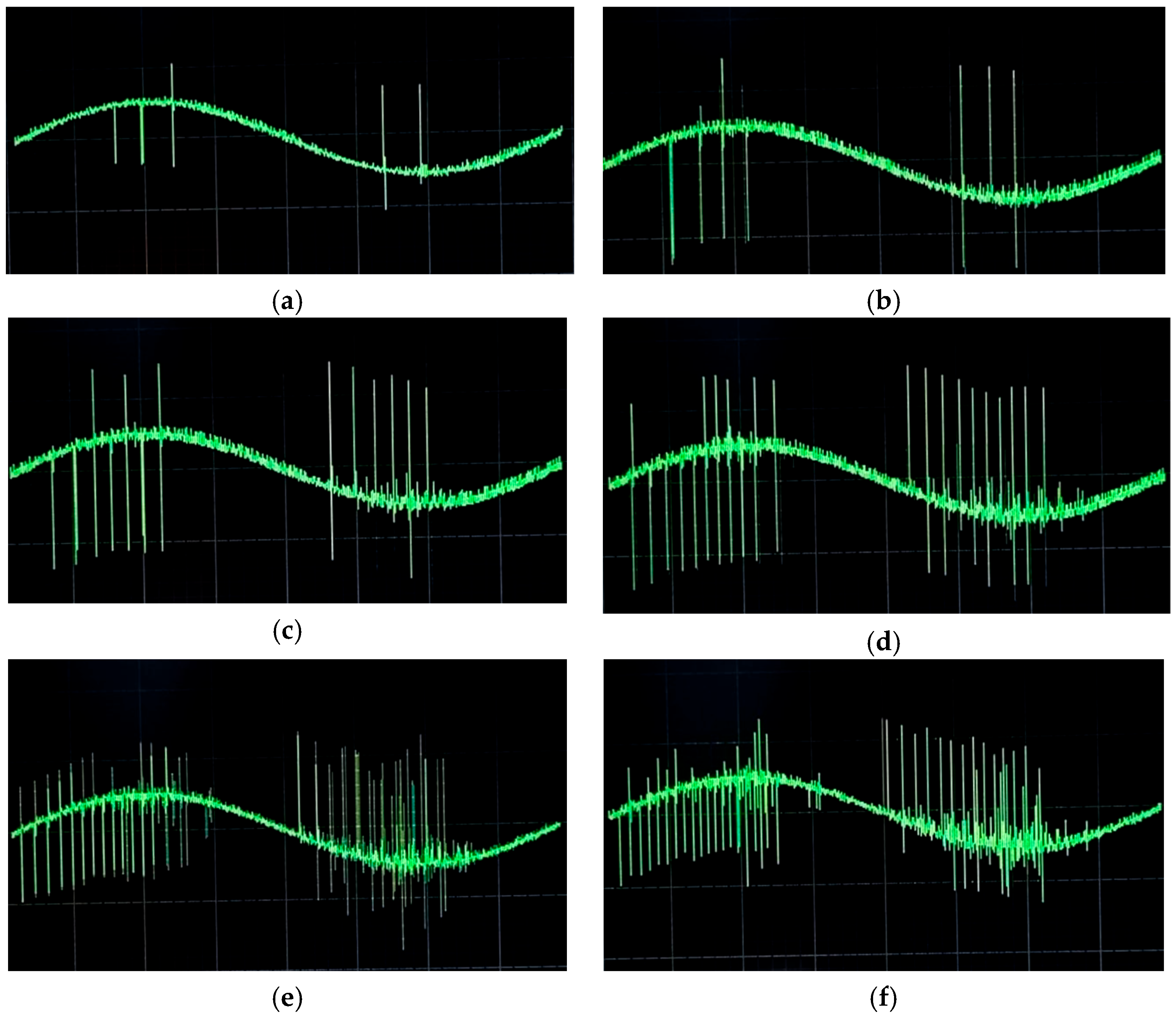- Transparency of the dielectric medium: The effectiveness of optical discharge detection relies on the assumption that the dielectric medium, in this case the oil, is optically transparent. In real-world applications, insulating oils degrade over time due to thermal and electrical stress, which can increase their turbidity, change their color, or generate suspended byproducts. This degradation would cause attenuation of the optical signal through scattering or absorption, making it difficult or even impossible to capture the discharge morphology, especially for low-intensity events.