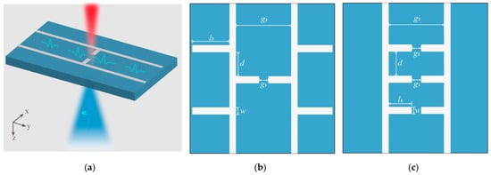 Due to their low pumping requirements, high signal-to-noise ratios, and compact sizes, photoconductive antennas (PCAs) are widely employed in commercial terahertz (THz) imaging and spectroscopy systems [1,2,3,4,5]. The conventional PCAs feature relatively low radiation power. The low power primarily originates from the inherent weakness of transient photocurrent radiation, while the THz energy dissipation along the coplanar transmission line (CTL) of PCAs contributes significantly as well. Minimizing these losses is crucial for substantially improving the overall energy efficiency of PCAs.