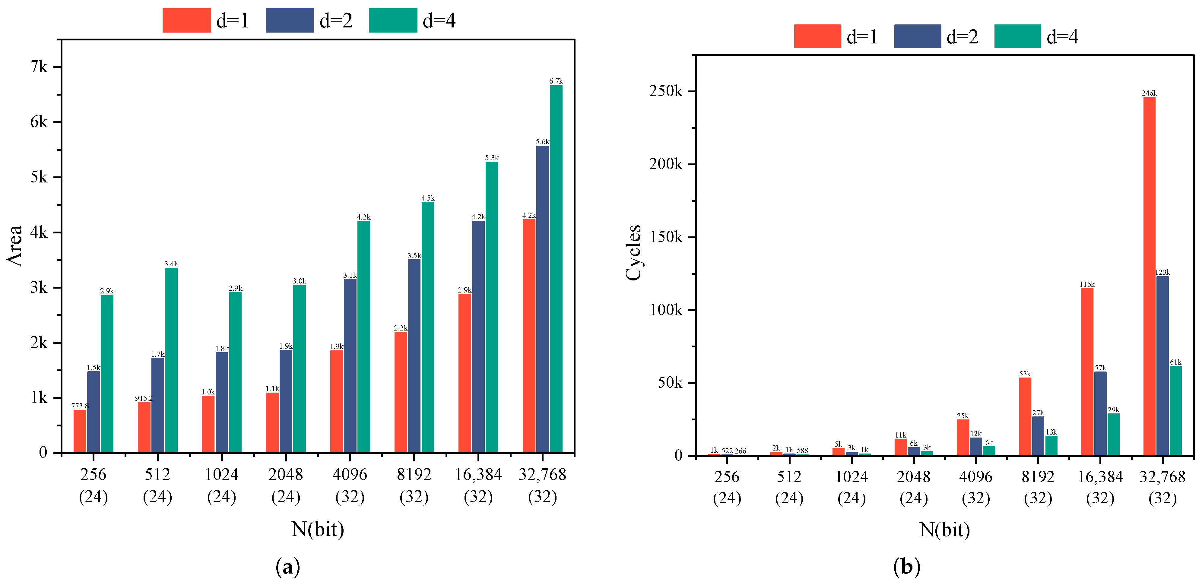 23] utilized a technique that recursively splits features, improving the area-time efficiency for modulus 12,289.