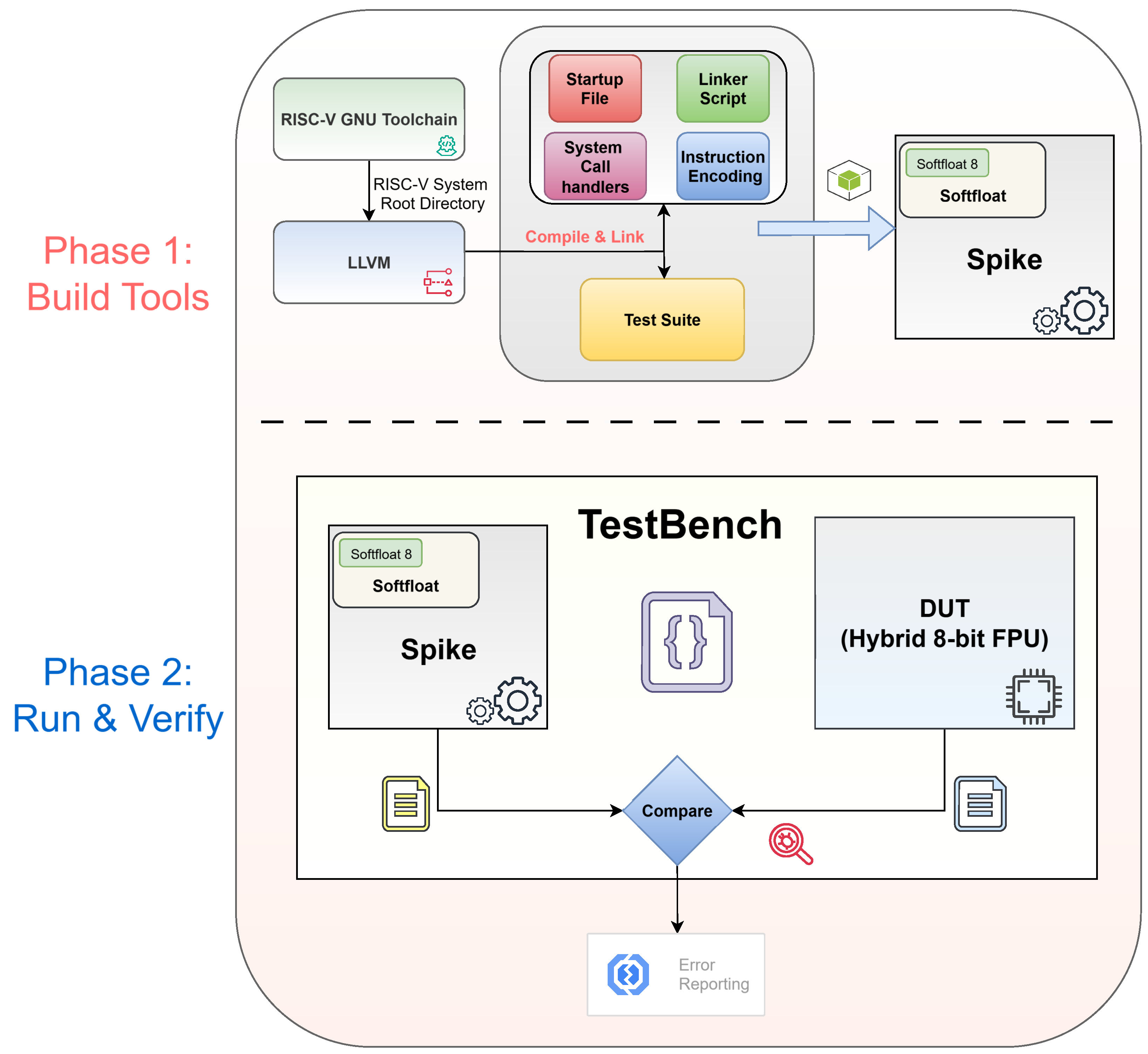 The extended Spike was integrated into a verification environment employed to verify the 8-bit floating-point support in a RISC-V vector processor design, developed as part of the “eProcessor” project funded by the European Union [10].