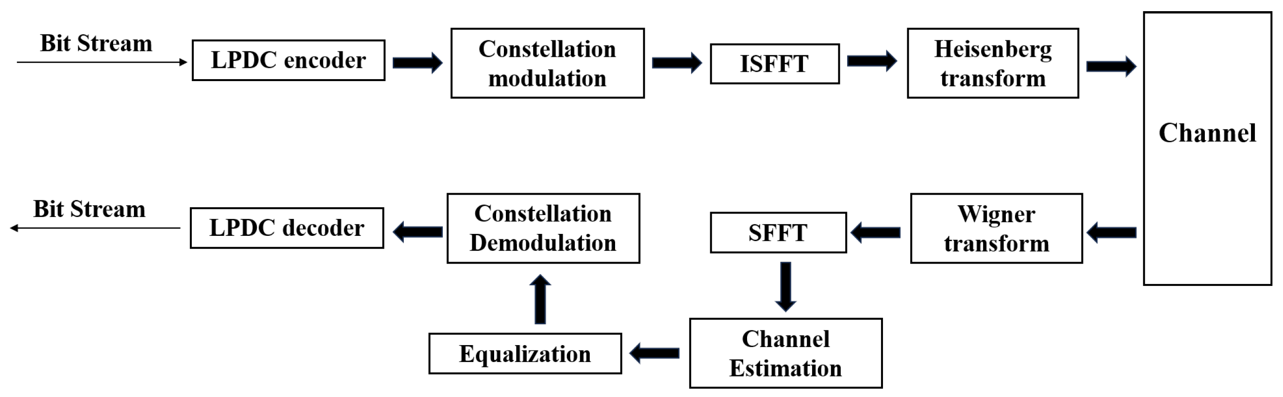 undergoes the Wigner transform (OTFS demodulation) at the receiver to convert it back to the TF domain. Finally, the Symplectic Fast Fourier Transform (SFFT) is applied to the resulting TF symbols to obtain the received DD domain symbols