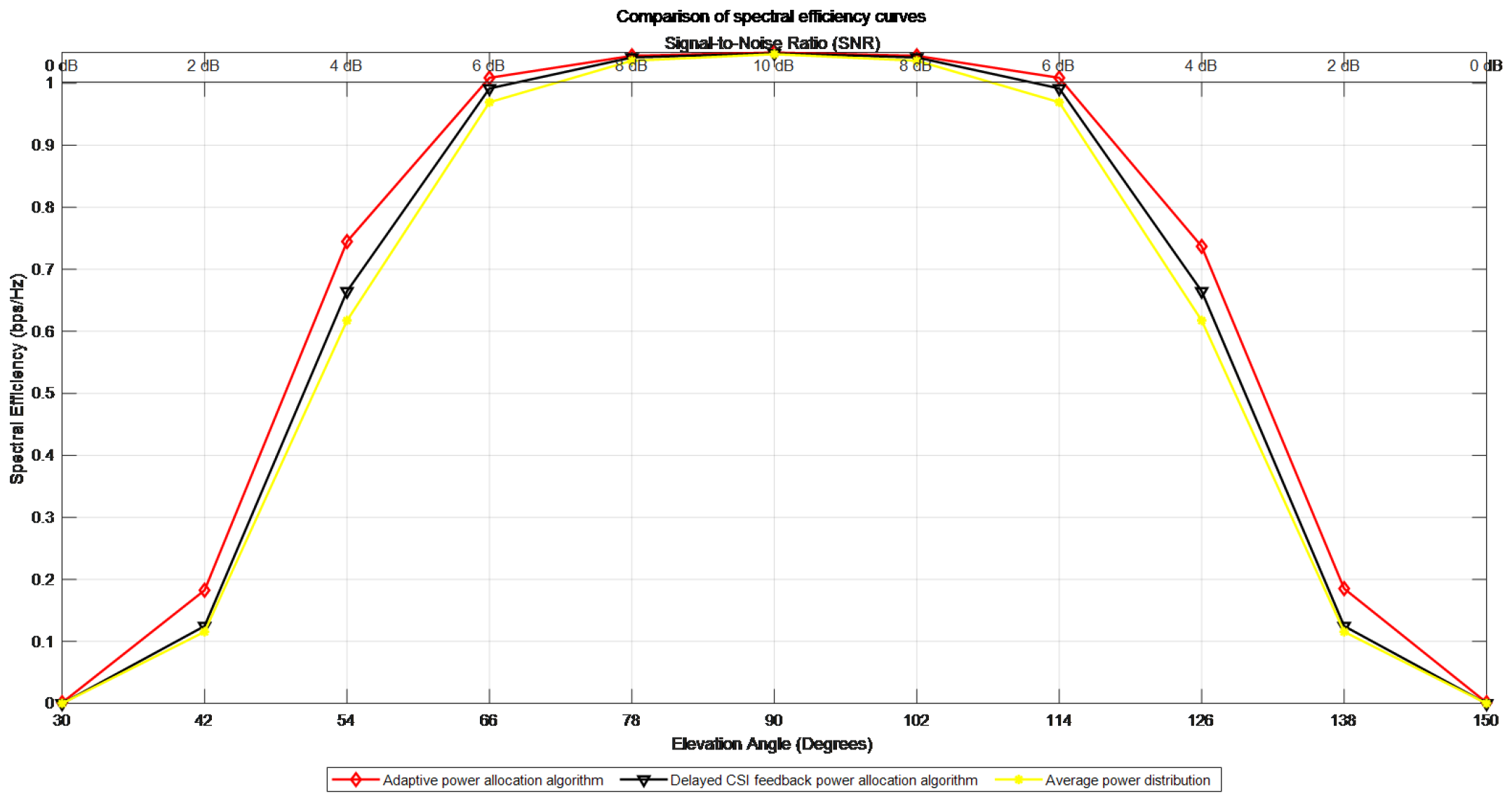 The corresponding relationship between the elevation Angle and the signal-to-noise ratio in adaptive power distribution is shown in