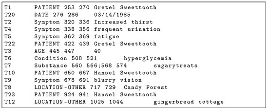 - Stubbs, A.; Uzuner, O. Annotating longitudinal clinical narratives for de-identification: The 2014 i2b2/UTHealth corpus. J. Biomed. Inform. 2015, 58, S20–S29. [Google Scholar] [CrossRef]