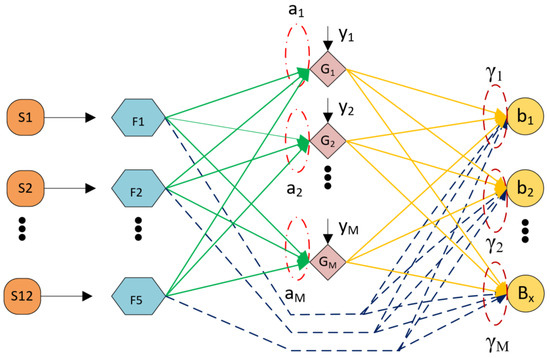 The RVFLN has emerged as a lightweight yet effective alternative to conventional neural network structures, particularly for handling nonlinear and noise-prone data in both classification and regression tasks. As seen in Figure 1, distinct from standard multilayer feedforward networks, RVFLNs employ a single hidden layer where the input weights and biases are randomly assigned once and remain unchanged. The training process is limited to the analytical estimation of the output layer parameters, which significantly reduces computational cost and accelerates convergence. This property makes RVFLNs highly attractive for scenarios that require rapid decision-making, such as real-time control and monitoring in power systems. The primary goal behind the development of RVFLNs was to achieve accurate functional approximation without relying on iterative optimization [50]. Over time, several improvements have been introduced, including robust designs incorporating weighted regression techniques, hardware-accelerated realizations for ultra-fast processing, and ensemble-based extensions to enhance classification accuracy across multiple classes [51,52,53,54,55,56]. Collectively, these efforts demonstrate the strong potential of RVFLNs in adaptive and uncertainty-aware applications such as fault diagnosis, where both speed and resilience are indispensable.