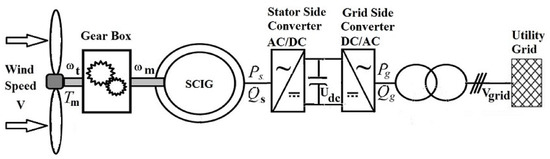 The configuration adopted in this study represents a grid-connected variable-speed wind energy system tailored for fault detection experimentation. The system features a horizontal-axis wind turbine mechanically linked to a wound rotor induction generator (WRIG), a well-known solution for medium-scale wind applications due to its controllability and efficiency in variable wind conditions.