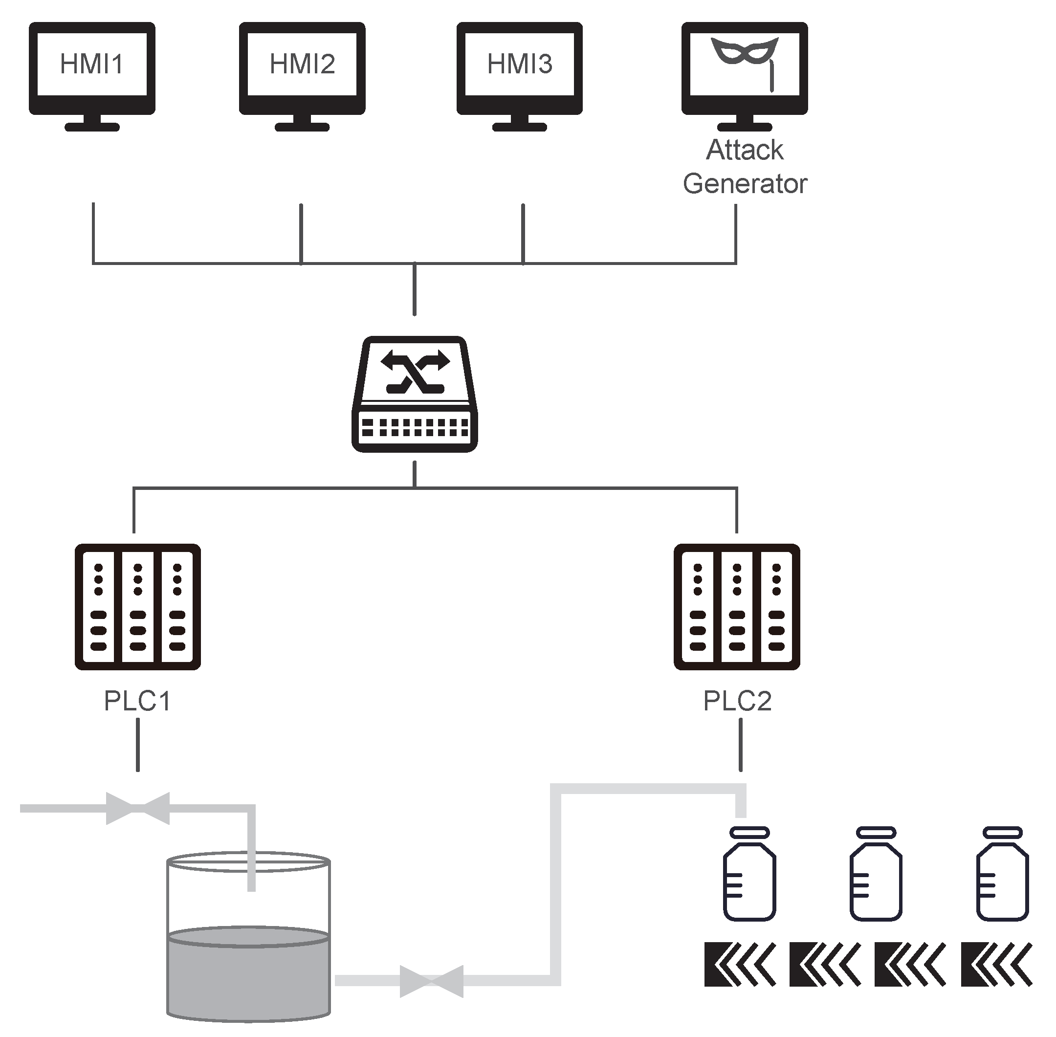 - Mathur, A.P.; Tippenhauer, N.O. SWaT: A water treatment testbed for research and training on ICS security. In Proceedings of the 2016 International Workshop on Cyber–Physical Systems for Smart Water Networks (CySWater), Vienna, Austria, 11 April 2016; pp. 31–36. [Google Scholar]