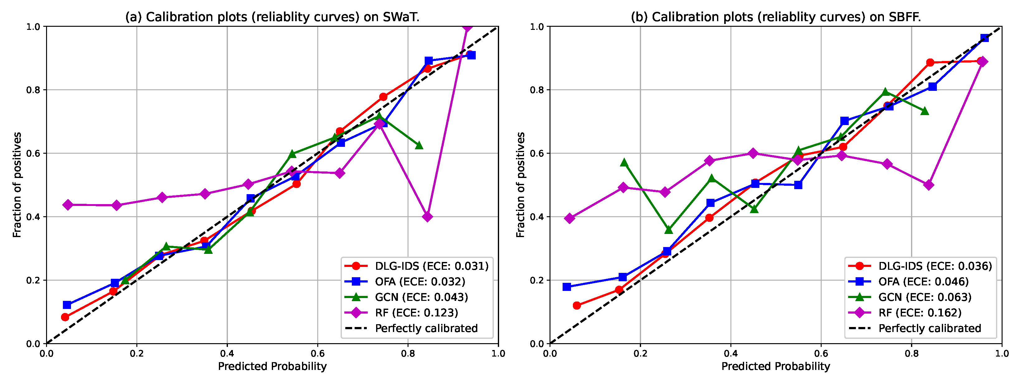- Graph–Level Feature Generation and Anomaly DetectionThis module generates anomaly probabilities for network traffic by globally aggregating and mapping multi–modal spatiotemporal features, thereby providing direct evidential support for security decision–making in industrial control systems.Extend the temporal features along the spatial dimension to and the spatial features along the temporal dimension to , ensuring dimensional consistency before concatenating them into .This design enables the model to adaptively adjust spatio–temporal weights based on the characteristics of the attack. For example, for slow infiltration attacks that depend on long–term temporal patterns, the model may assign higher weight to the temporal path, whereas for lateral movement attacks that rely on abnormal topological propagation, the spatial path weight is increased.