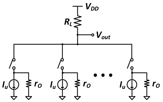 - Park, G.; Song, M. A CMOS Current-Steering D/A Converter with Full-Swing Output Voltage and a Quaternary Driver. IEEE Trans. Circuits Syst. II Express Briefs 2015, 62, 671–675. [Google Scholar] [CrossRef]