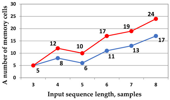 Memory consumption results for the proposed DKT algorithms are shown in Figure 7. We have calculated the number of memory cells required for the algorithms presented in Section 3 using the designed pseudocodes. These pseudocodes are shown in Appendix A. Our solutions use 34% more memory than the direct matrix-vector product. We averaged this characteristic over the input sizes ranging from 4 to 8.