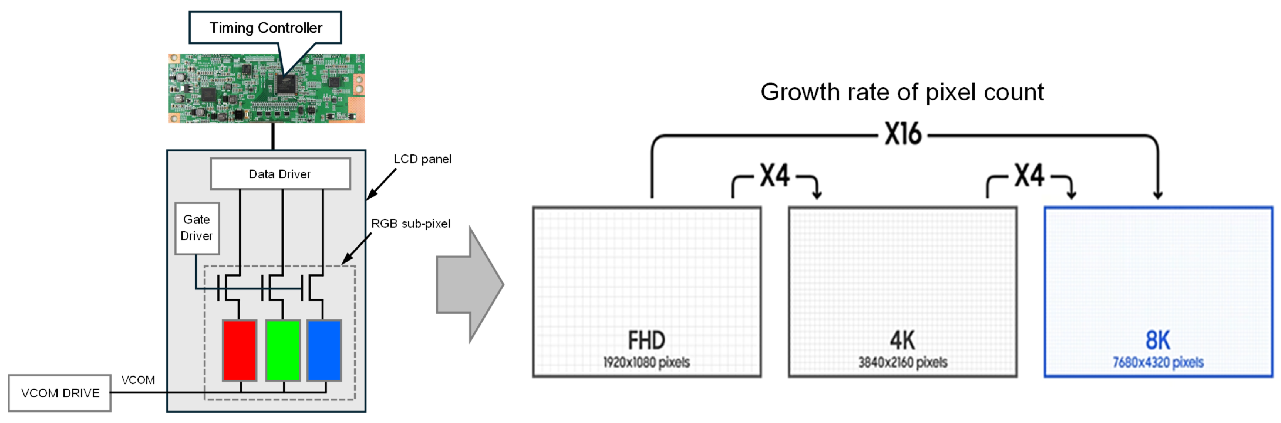| TFT leakage current | Charge loss of pixel storage capacitor due to TFT leakage current | Reduction in the storage capacitor’s capacitance with increasing display resolution |