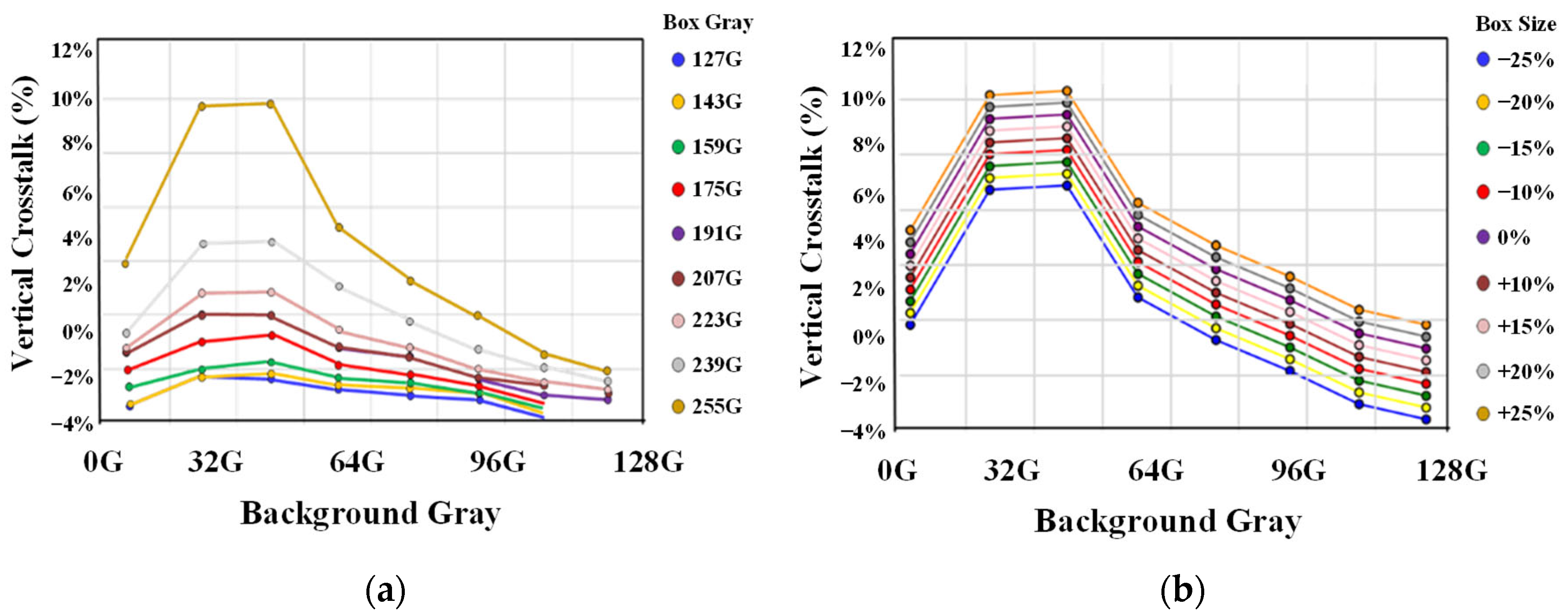 - Badano, A.; Kanicki, J. Characterization of crosstalk in high-resolution active-matrix liquid crystal displays for medical imaging. In Flat Panel Display Technology and Display Metrology II, Proceedings of the Photonics West 2001-Electronic Imaging, San Jose, CA, USA, 30 April 2001; SPIE: Bellingham, WA, USA, 2001; Volume 4295, pp. 248–253. [Google Scholar] [CrossRef]