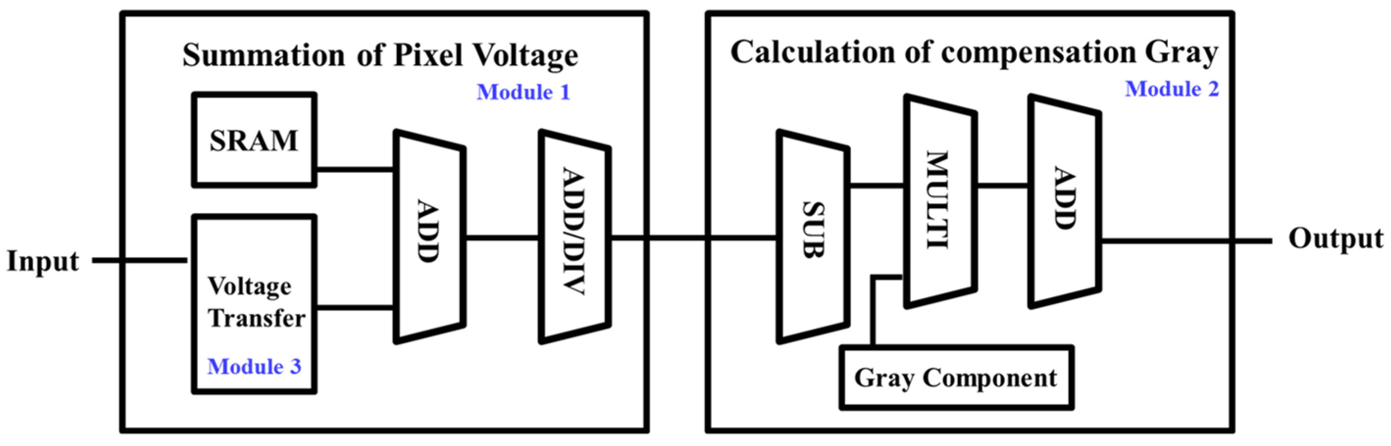 | Our study | 8K LCDs; CT suppression via data compensation | Low (uses a few pixel data) | Low (small storage) | Streaming implementation on T-con | Memory-efficient, scalable without structural changes |