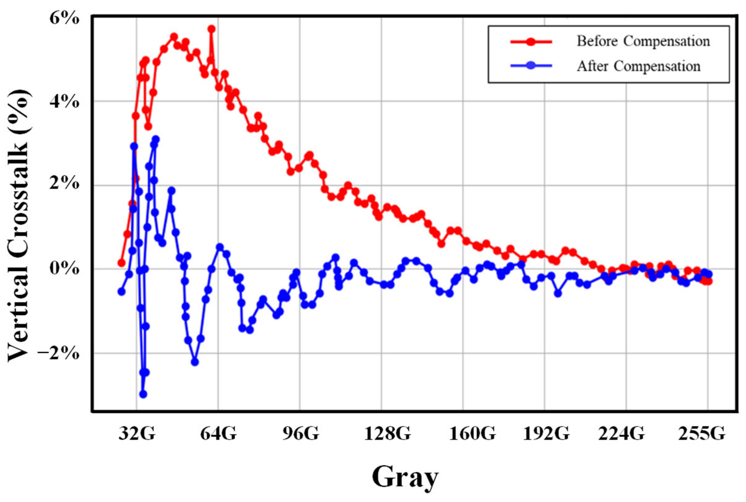 Lee Y, Choi K, Park H, Kim YJ, Choi K, Jeon J-H, Ko MJ. A Memory-Efficient Compensation Algorithm for Vertical Crosstalk in 8K LCD Panels. Electronics. 2025; 14(19):3965. https://doi.org/10.3390/electronics14193965