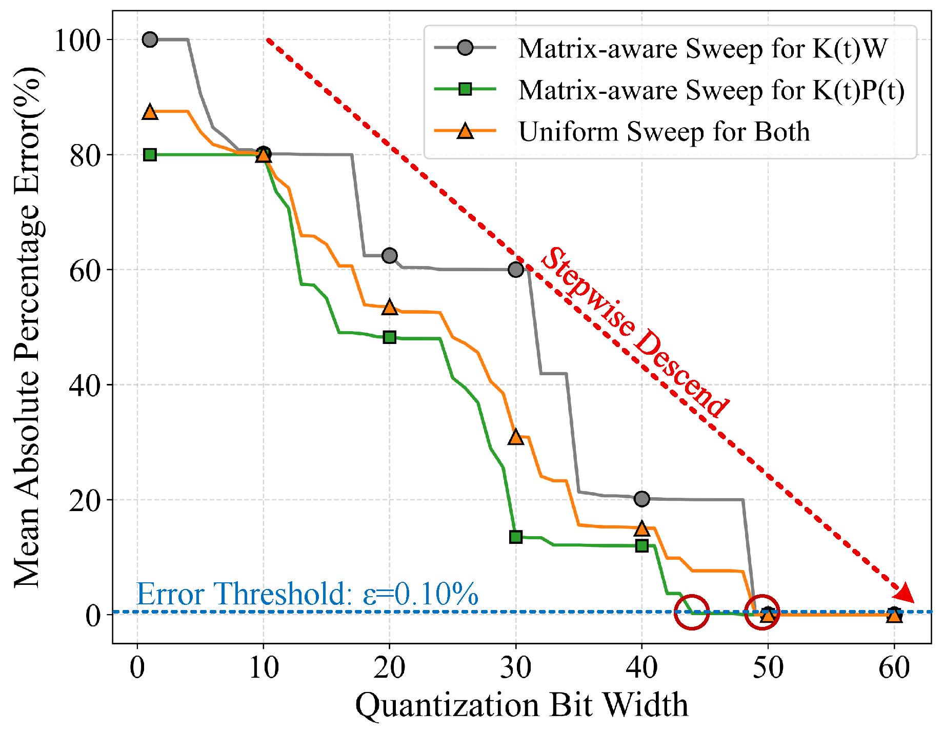 Proposed matrix-aware fixed-point quantization bit width search method and uniform bit-width sweep method for coefficient matrices.