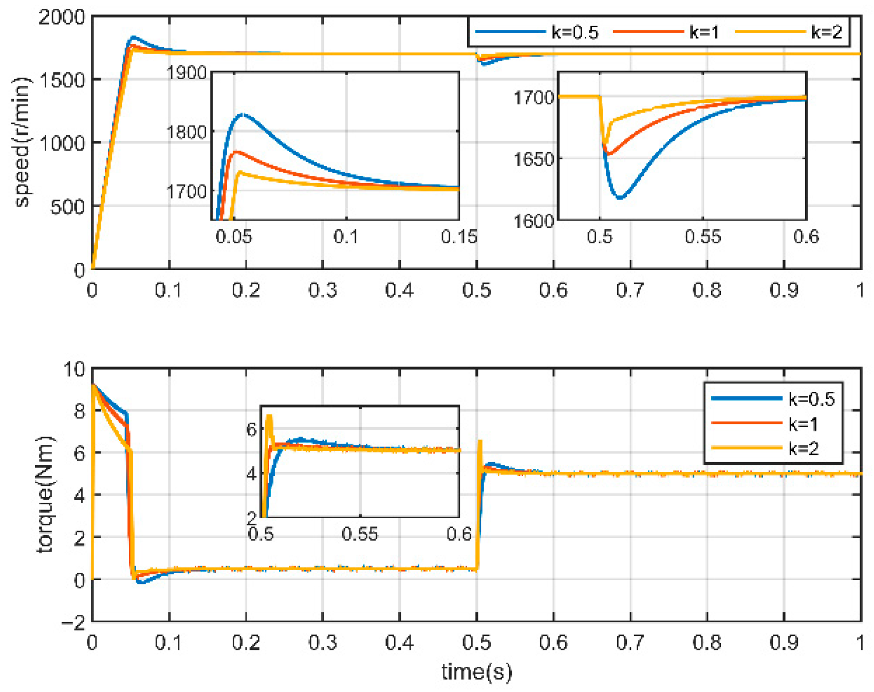 Figure 7 shows the simulated waveforms of speed and torque for different parameter values of