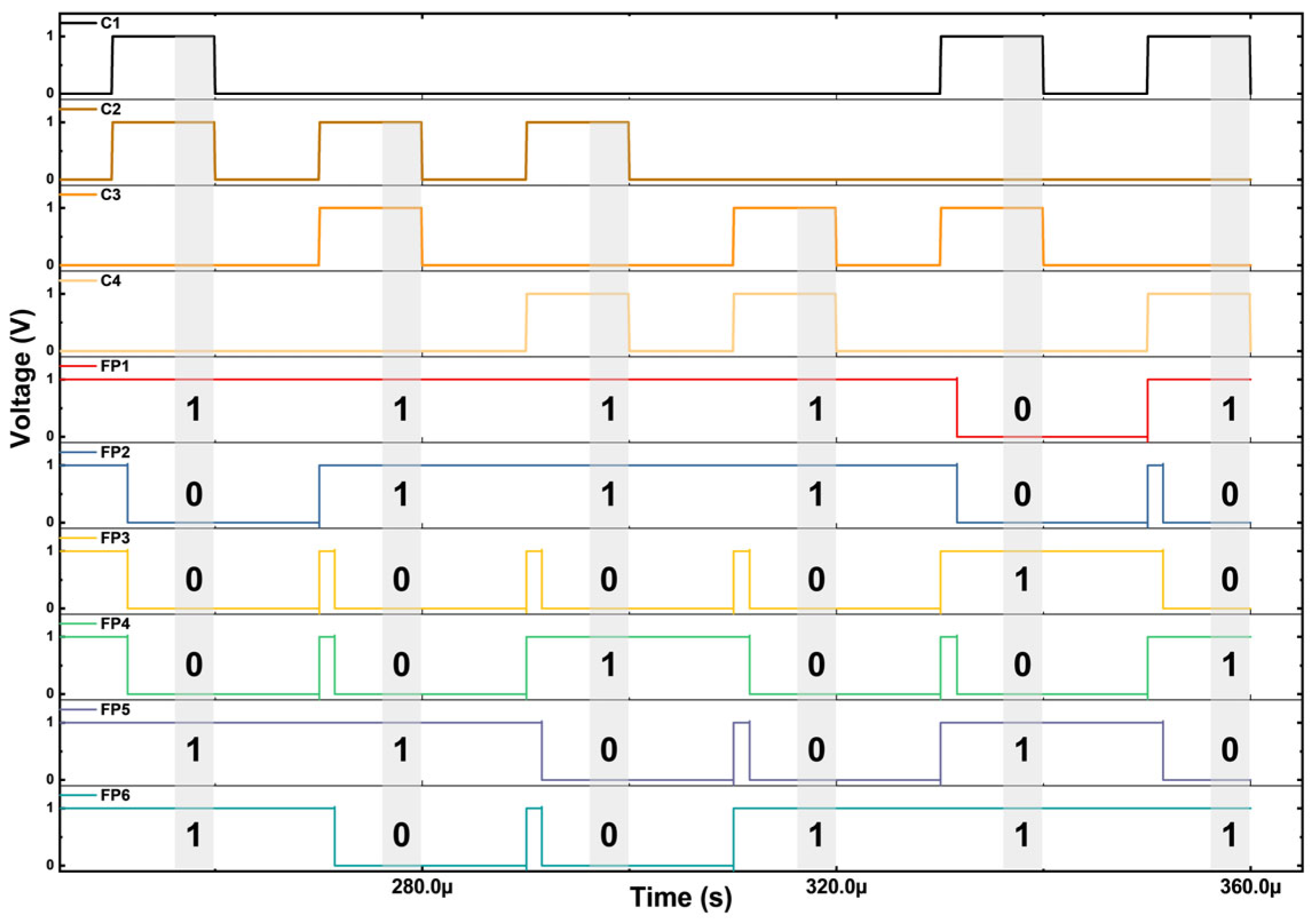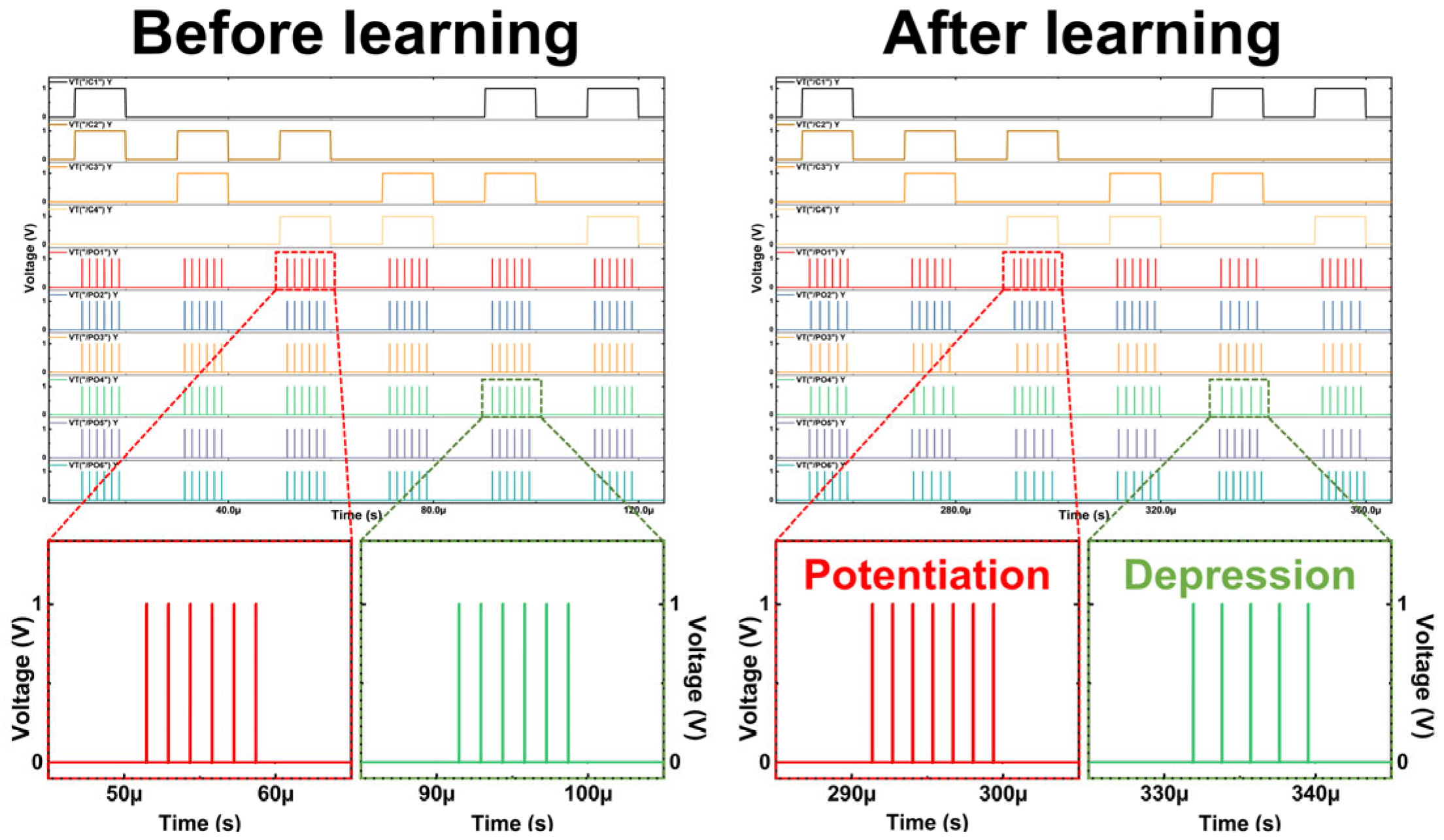3.1. Cadence Simulation Results of Overall System Operation Under Ideal Synapse Condition