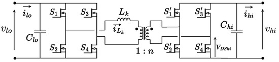 - Hou, R.; Magne, P.; Bilgin, B.; Emadi, A. A topological evaluation of isolated DC/DC converters for Auxiliary Power Modules in Electrified Vehicle applications. In Proceedings of the 2015 IEEE Applied Power Electronics Conference and Exposition (APEC), Charlotte, NC, USA, 5–19 March 2015; pp. 1360–1366. [Google Scholar] [CrossRef]