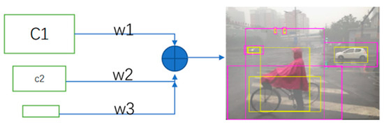 When the light conditions are good, there are still other factors, like scale variations or occlusions, that reduce the confidence level. We recommend using robust detection algorithms because they have been designed to handle these problems and no effort has been made to deal with foggy environments. The object detection algorithm we chose here is YOLOv4 [25], and we used pre-trained network weights, which have an accuracy of 65.7% mAP@0.5 (43.5% AP@0.5:0.95), on the MS COCO [26] dataset for the following parameters: width = 608, height = 608. There is no restriction on choosing object detection algorithms; one-stage and two-stage methods are both available.