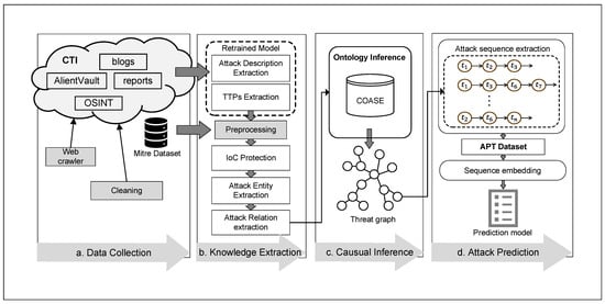 In this paper, we aim to extract real attack sequences with causal relationships from CTI reports to construct a dataset and train an attack prediction model to achieve predictions at the level of specific attack techniques. As shown in Figure 2, our work involves the following processes: