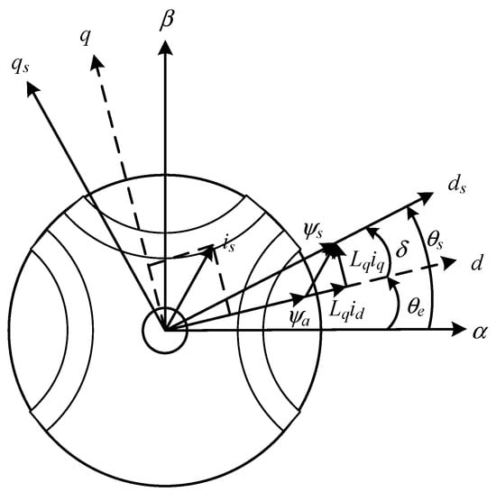 In (3), the torque is composed of two parts. The first term is the electromagnetic torque generated by the interaction between the permanent magnet air gap magnetic field and the stator armature magnetic field, that is, the permanent magnet torque. The second term is the reluctance torque caused by the asymmetry of the magnetic circuit of the d-q axes of the motor.