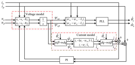 In this paper, an active flux observer based on a hybrid model of VM and CM is adopted, and its detailed structure block diagram is shown in Figure 6.