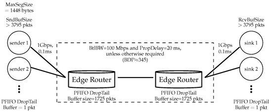 - Lahanas, A.; Tsaoussidis, V. Exploiting the efficiency and fairness potential of AIMD-based congestion avoidance and control. Comput. Netw. 2003, 43, 227–245. [Google Scholar] [CrossRef]
