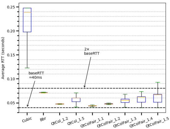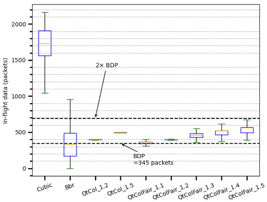 - Cao, Y.; Jain, A.; Sharma, K.; Balasubramanian, A.; Gandhi, A. When to use and when not to use BBR: An empirical analysis and evaluation study. In IMC ’19, Proceedings of the ACM Internet Measurement Conference, Amsterdam, the Netherlands, 21–23 October 2019; Association for Computing Machinery: New York, NY, USA, 2019; pp. 130–136. [Google Scholar]