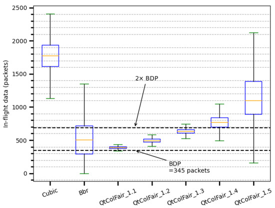 - Cardwell, N.; Cheng, Y.; Gunn, S.C.; Yeganeh, S.H.; Jacobson, V. BBR: Congestion-Based Congestion Control. Commun. ACM 2017, 60, 58–66. [Google Scholar] [CrossRef]
