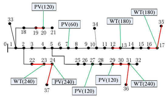 In this section, the IEEE33 node distribution system is further used as an arithmetic example and its topology is shown in Figure 9 below: