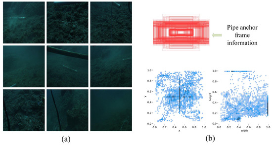 In this research, a total of 7971 publicly available data sets are used for deep-sea pipeline target detection (The specific sources are described in the Data Availability Statement section at the end of the article). Test set data information pictures are shown in Figure 5. Some contain only the seabed, are blurred, and have low brightness, and some contain rope and non-pipeline interference.