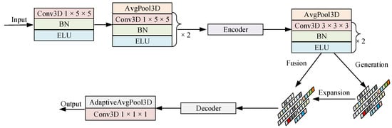 Figure 4 illustrates the structure of 3D-SimAM. The input is a video segment V ∈ R3×T×H×W containing T frames of the facial ROI, where T is the number of frames. The initial layer uses 3D convolution kernels of size 1 × 5 × 5 with a stride of 1, primarily responsible for extracting low-level spatiotemporal features from the video frames. This layer extracts features in both spatial and temporal dimensions to ensure that subsequent layers can extract deeper features based on this foundation. Next, the feature map passes through the first recurrent layer, where average pooling is applied to reduce the spatial dimensions of the feature map. In the recurrent layer, two 3D convolution layers, both with kernel sizes of 3 × 3 × 3, are used to reduce the computational complexity while retaining the average feature information. These layers further extract more complex features, followed by Batch Normalization (BN) and ELU activation functions to alleviate the vanishing gradient problem, accelerate training and enhance the network’s representational ability.