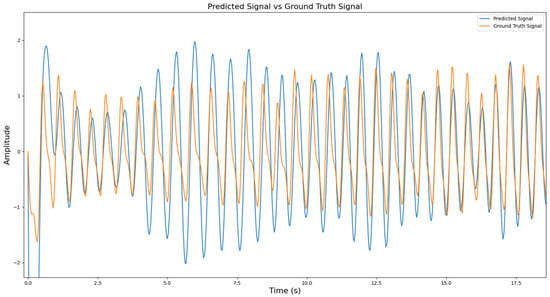 In order to judge the fitting degree of the proposed model to the rPPG signal, intra-dataset tests were carried out on the UBFC and PURE datasets, respectively. Figure 12 and Figure 13, respectively, show the comparison graphs between the estimated signals on the UBFC and PURE datasets, and their corresponding ground truth signals. It can be intuitively seen from the graphs that the rPPG signal curve obtained by the model in this paper presents a high consistency compared with the real signal curve on the ground. It is proved that the model has high accuracy in predicting heart rate signal.