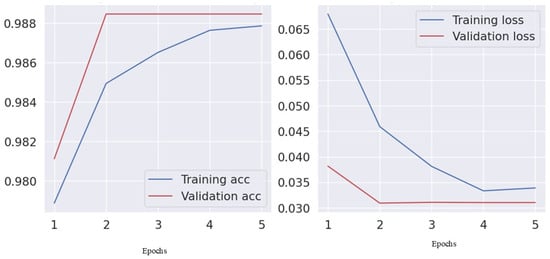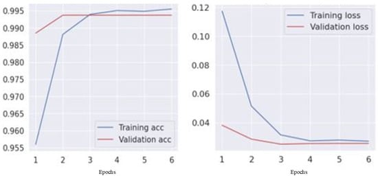 The conceptual framework integrated an LSTM-based language model (i.e., BERT/Bi-LSTM), as illustrated in Figure 2. To enhance the model’s performance, we divided the dataset into three subsets: training, validation, and testing, constituting 70%, 15%, and 15% of the data, respectively. The last layer weights generated by the pre-trained models were fed into the Bi-LSTM layer to perform the fine-tuning classification task. The optimization of the LSTM model involved experimenting with configurations, resulting in three types of dense layers. The first layer has 64 units with ReLU activation and a 0.2 dropout layer, followed by another layer with 32 units, ReLU activation, and a 0.2 dropout layer. The final layer is an output layer with two units using the SoftMax activation function. Furthermore, our configuration includes 128 LSTM cells with a learning rate of , a batch size of 32, Adam optimizer, and Cross Entropy Loss as the chosen loss function []. The hyperparameters used in the BERT/Bi-LSTM configuration are presented in Table 5.