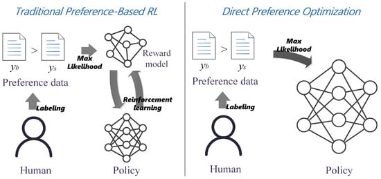 - Rafailov, R.; Sharma, A.; Mitchell, E.; Manning, C.D.; Ermon, S.; Finn, C. Direct preference optimization: Your language model is secretly a reward model. In Proceedings of the Advances in Neural Information Processing Systems, New Orleans, LA, USA, 10–16 December 2023. [Google Scholar]