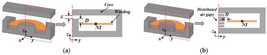 Structures of conventional inductor: (a) conventional inductor with single air gap, (b) conventional inductor with multiple air gaps.