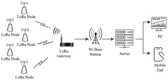 The research team has independently designed an offshore aquaculture environment monitoring system. This system integrates water quality and meteorological sensors for data acquisition and utilizes LoRa + 5G technology to transmit the data to a server for storage, processing, and analysis. Ultimately, users can access real-time information about the aquaculture environment through information terminals such as mobile phones, tablets, and computers, receive timely alerts for anomalies, and remotely control corresponding equipment based on monitoring results. The overall architecture of the monitoring system is shown in Figure 1.